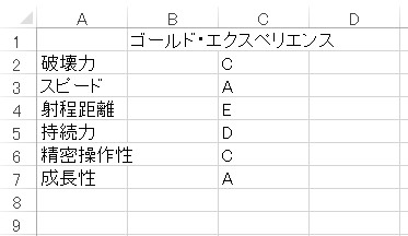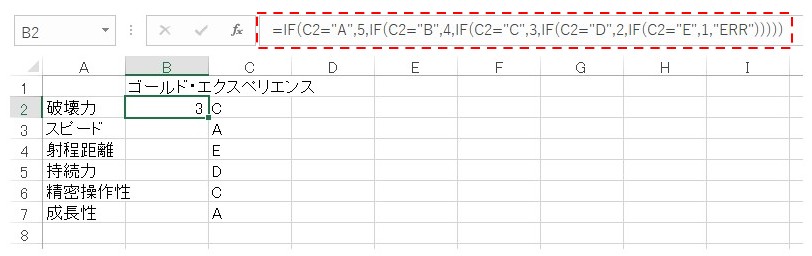 今回は破壊力:Cですので、B2セルに「3」が入力されています。