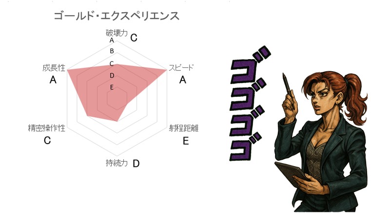 ゴールド・エクスペリエンスの能力値は以下のようになっています2。